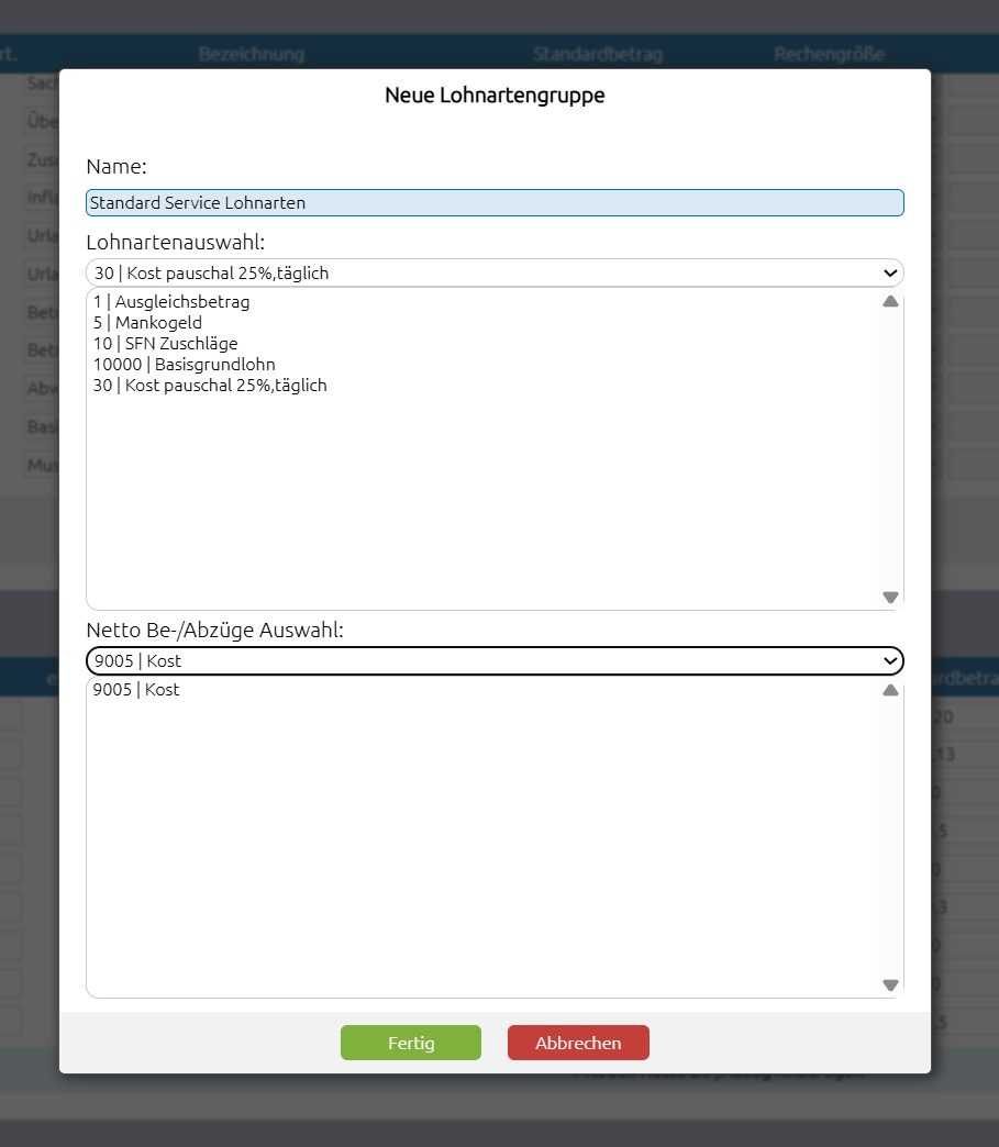 Die erstellte Lohnartengruppe steht anschließend in der Mitarbeiter-Maske zur Auswahl bereit und kann direkt zugewiesen werden.